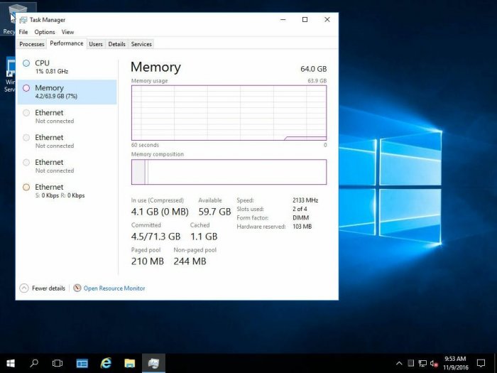 Windows Serverවලට වැඩි හැකියාවන්ගෙන් යුත් දෘඪාංග සමග කටයුතු කරන්නට පුළුවන්. Windows 10 Pro වෙළුමට භාවිත කළ හැකි උපරිම RAM ධාරිතාව ටෙරාබයිට් 2 යි. නමුත්, Windows Server මෙහෙයුම් පද්ධතියට ටෙරාබයිට් 24ක් දක්වා තම ආධිපත්යය පතුරුවන්නට පුළුවන්. සාමාන්යයෙන් desktop පරිගණකයක අපි එතරම් සුවිසල් රැම් එකක් යොදන්නේ නැති නමුත්, විශාල වැඩ කොටසක් කරන සර්වරයකට වැඩි RAM ධාරිතාවක් අවශ්ය වෙනවා. ඒවාට පිවිසෙන පරිශීලක සංඛ්යාවේ වැඩි බව, ලබා දිය යුතු සේවාවන්ගේ ප්ර්රමාණය, වරක දී වැඩි කාර්යය ප්රමාණයක් slow නොවී කළ හැකි වීම ඇතුළු වගකීම් රැසක් සර්වරයක් සතු යි.